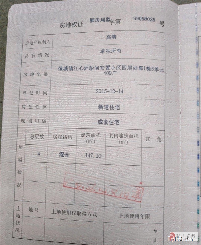 颍上江心洲小区 5室2厅2卫 148平米有房产证