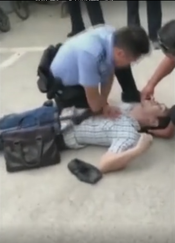 太和县三塔镇李陈村委会村民李某(男,42岁)到三塔派出所办理户口业务时,由于天气炎热,突发疾病休克倒在派出所院内,身体蜷缩在一起,脸色发白,全身发青,嘴角流血,渐渐停止了呼吸。正准备出警的阜阳太和公安局三塔派出所值班民警李鸿志发现情况不对后,立马跑过去对李某进行心肺复苏,并大声喊话鼓励他坚持住。