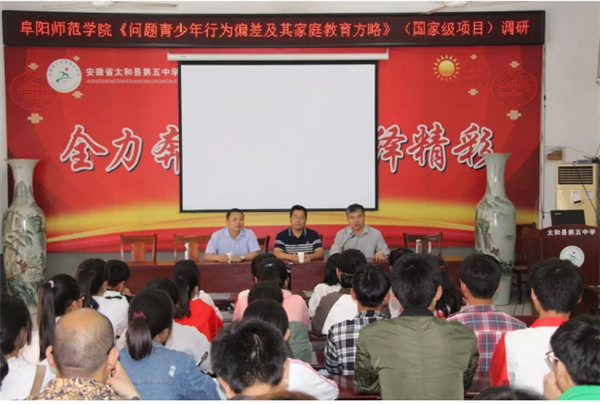 2018年5月10日,阜阳师范学院国家级创新训练项目《问题青少年行为偏差及其家庭教育方略》及《皖西北农民工“留守”子女情感教育实践调查》课题组成员在教育学院葛西强书记、汪杰锋教授的带领下赴太和五中开展